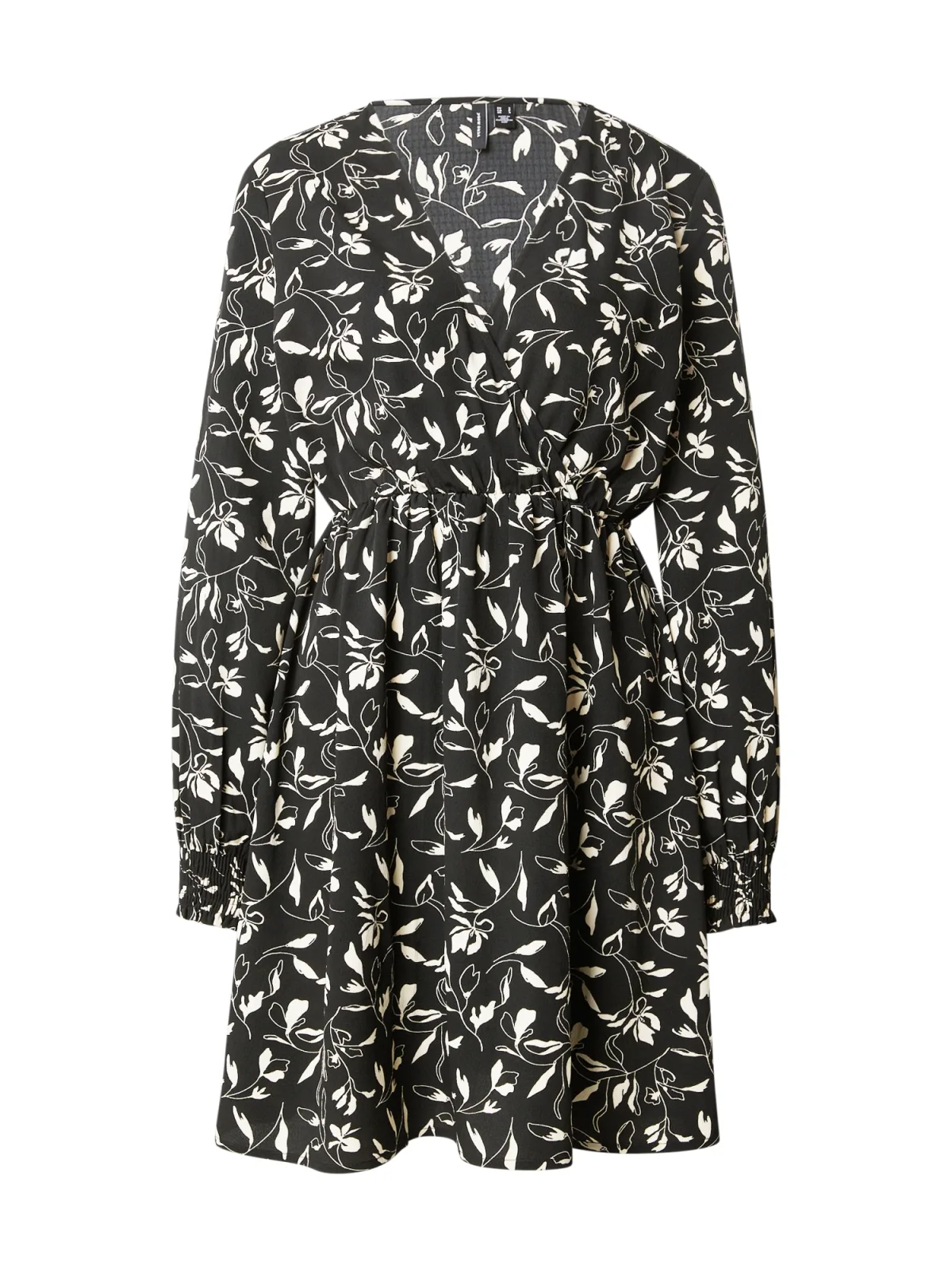 Design: Gevoerde zoom/rand, Diepe snit/decolleté; Materiaal: Gerecycled materiaal; Halstype: V-hals; Motief: Bloemenprint; Details: Gedrapeerd, Wikkel design; Extra's: All-over patroon, Gladde stof; Lengte: Kort/mini; Snit: Getailleerd; Pasvorm: Normale pasvorm; Armlengte: Lange mouw