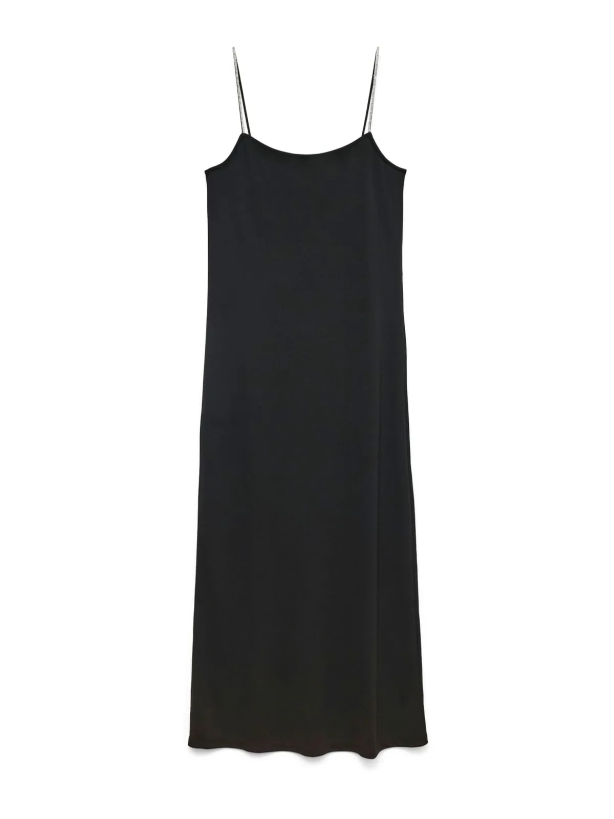 Design: Gevoerde zoom/rand, Beenopening, Diepe snit/decolleté; Materiaal: Gerecycled materiaal; Halstype: Ronde hals; Motief: Effen; Soort bandjes: Spaghettibandjes; Details: Sierstenen; Extra's: Met halfedelstenen, Op staal naden, Voelt zacht aan; Lengte: 3/4 lengte; Snit: Recht; Pasvorm: Slanke pasvorm; Armlengte: Mouwloos