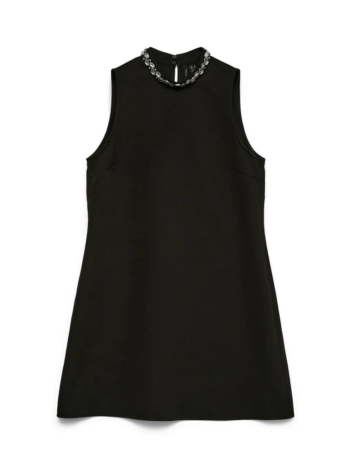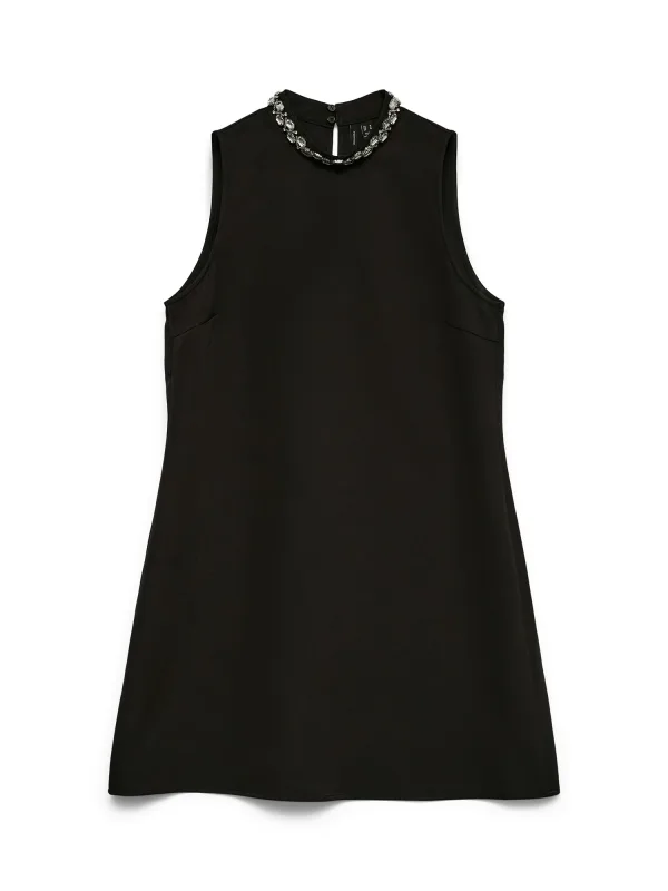Design: Gevoerde zoom/rand, Flare, Keyholesluiting; Type sluiting: Knoopsluiting; Materiaal: Gerecycled materiaal; Halstype: Opstaande kraag; Motief: Effen; Details: Cut-outs, Sierstenen; Extra's: Op staal naden, Gladde stof; Lengte: Kort/mini; Snit: Recht; Pasvorm: Normale pasvorm; Armlengte: Mouwloos