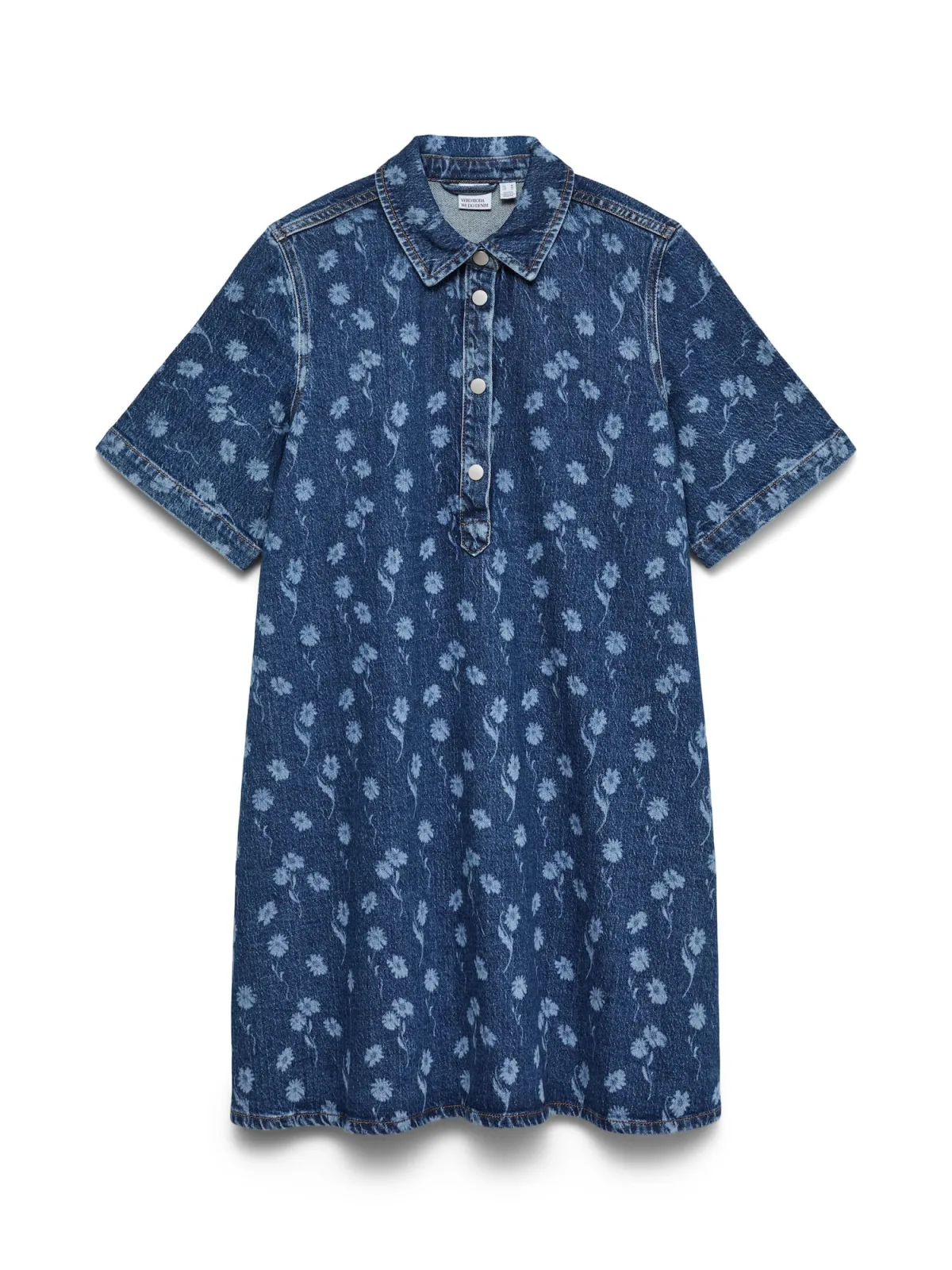 Design: Knop placket; Type sluiting: Knoopsluiting; Materiaal: Denim; Halstype: Polokraag; Motief: Bloemenprint; Extra's: All-over patroon; Lengte: Kort/mini; Pasvorm: Wijde pasvorm; Armlengte: Kwartmouw
