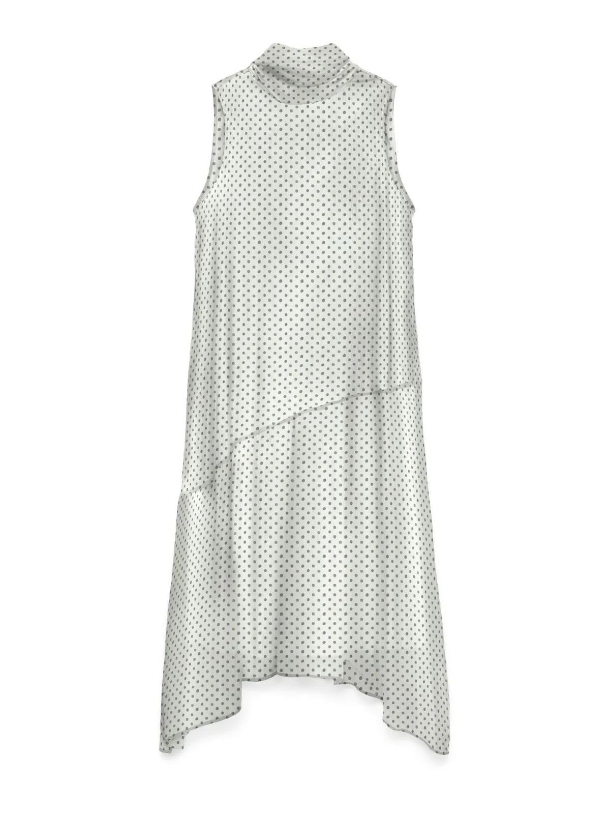 Design: Gevoerde zoom/rand, Om te knopen/binden; Materiaal: Gerecycled materiaal; Halstype: Opstaande kraag; Motief: Gestippeld; Details: Cut-outs, Volant; Extra's: All-over patroon, Op staal naden, Lichte stof; Lengte: 3/4 lengte; Snit: Recht; Pasvorm: Normale pasvorm; Armlengte: Mouwloos
