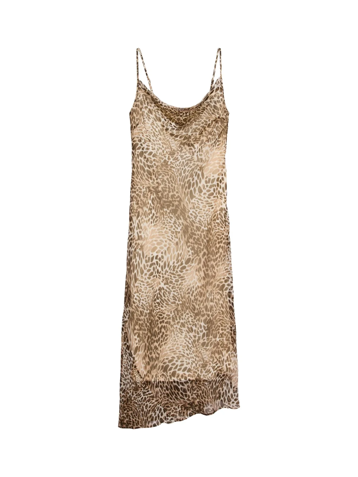 Design: Asymmetrische zoom, Figuurnaden; Materiaal: Gerecycled materiaal; Halstype: Watervalhals; Motief: Dierenprint; Soort bandjes: Spaghettibandjes; Details: Plooien; Extra's: Verstelbare bandjes, All-over patroon, Gladde stof, Milieuvriendelijk geproduceerd; Lengte: 7/8 lengte; Pasvorm: Normale pasvorm; Armlengte: Mouwloos
