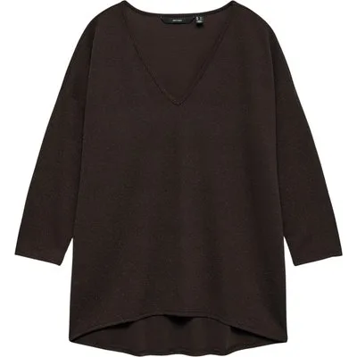 Specificaties: * Pasvorm: loose fit; v-hals; 3/4 mouwen * Kleur: donkerbruin * Materiaal: 73% polyester – 22% metaal – 5% elastaan