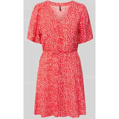 dames mini-jurk van Vero Moda;Model 'Alba';look: effen kleuren;pasvorm: licht uitlopend;Lengte: mini;hals: V-hals;Details: tailleriem om te strikken;Sluiting: knoopsluiting;mouwvorm: korte mouw, wijdte mouwen;Materiaal: zuiver viscose