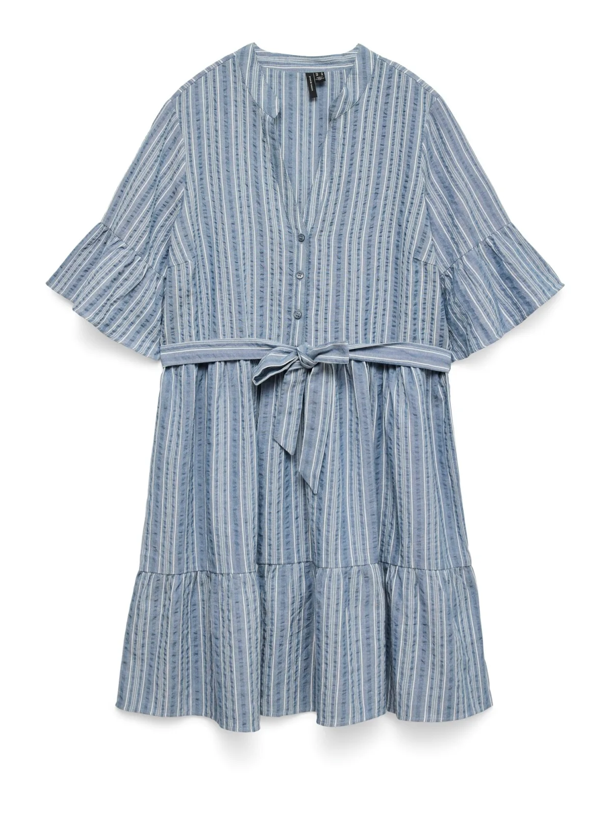 Design: Knop placket, Tailleriem; Type sluiting: Knoopsluiting; Materiaal: Katoen; Motief: Gestreept; Kraag: Zonder kraag; Details: Volant; Extra's: All-over patroon, Voelt zacht aan; Borstvoedingsfunctie: Met borstvoedingsfunctie; Lengte: Knielengte; Snit: Getailleerd; Pasvorm: Normale pasvorm; Armlengte: Halve mouw