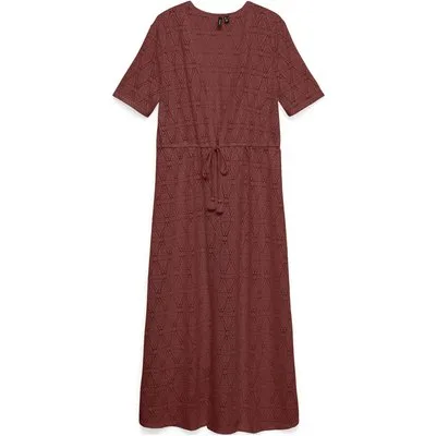 Specificaties: * Pasvorm: lang model tot de enkels; 2/4 mouwen; riem in de taille * Kleur: bruin * Materiaal: 95% polyester – 5% elastaan