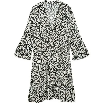 Specificaties: * Pasvorm: regular fit; V-hals; korte lengte * Kleur: off white - zwart * Materiaal: 100% viscose