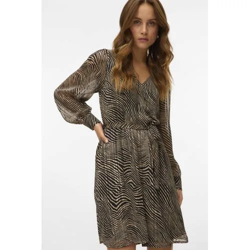 Design: 2-knoops manchetten, Gevoerde zoom/rand, Rechte manchetten, Tailleriem; Halstype: V-hals; Motief: Dierenprint; Details: Gedrapeerd; Extra's: Licht transparant, All-over patroon, Gladde stof; Lengte: Knielengte; Snit: Getailleerd; Pasvorm: Normale pasvorm; Armlengte: Lange mouw
