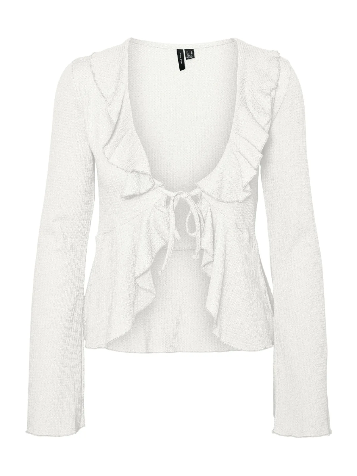 Blouse type: Blouseshirt; Design: Gevoerde zoom/rand, Om te knopen/binden; Materiaal: Gerecycled materiaal; Motief: Effen; Kraag: Zonder kraag; Details: Volant; Extra's: Op staal naden, Met textuur; Pasvorm: Normale pasvorm; Armlengte: Lange mouw; Lengte: Normale lengte