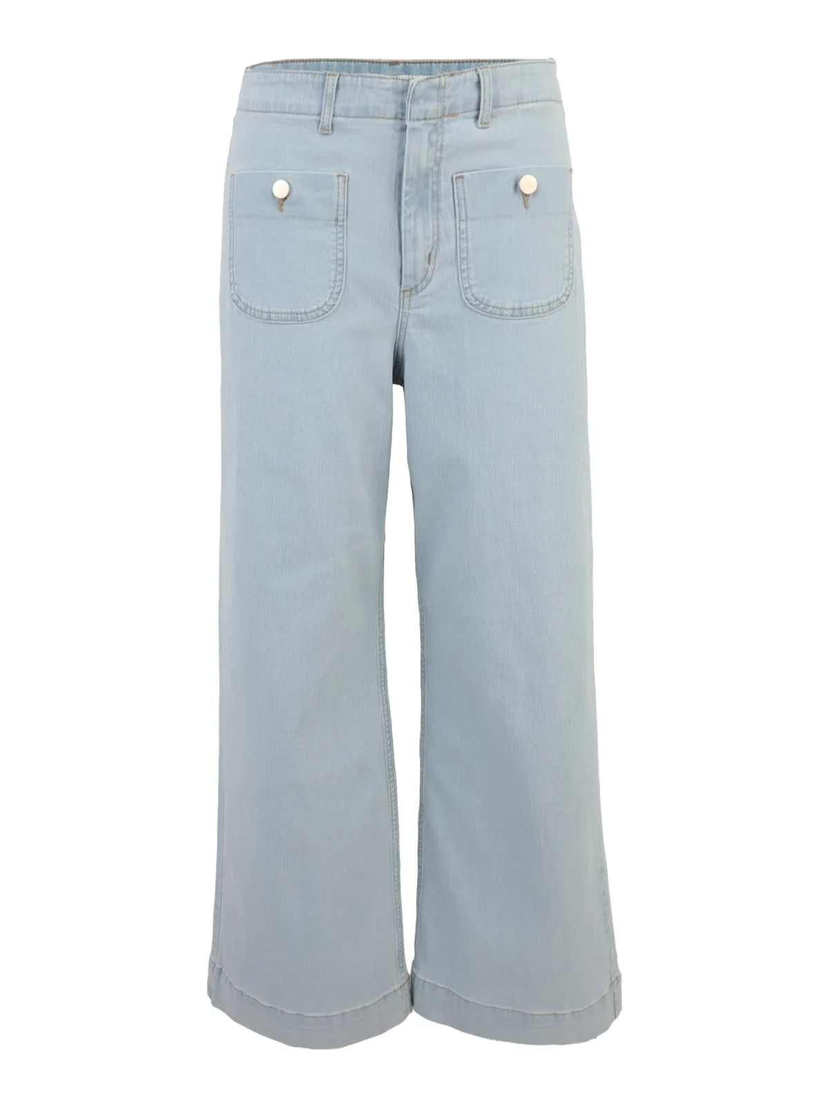Design: Gevoerde zoom/rand, Opgezette zakken, Achterzak; Type sluiting: Ritssluiting; Materiaal: Denim; Motief: Effen; Extra's: Contrasterende naden, Vaste grip, Riemlussen; Wassing: Light washed; Lengte: Lang/maxi; Pasvorm: Wide leg; Taillehoogte: Mid waist