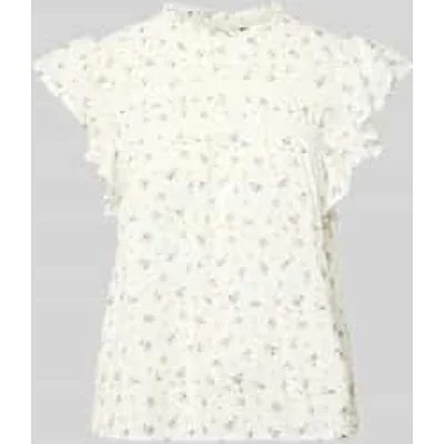 dames blousetop van Vero Moda;Model 'Trine';look: effen;Pasvorm: regular fit;kraagmodel: kraag met ruches;Patroon: gestippeld;Details: plooien, plooien, achterpas;hals: ronde hals;sluiting: knoop;mouwvorm: korte mouw;materiaalverwerking: popeline;Materiaal: puur katoen
