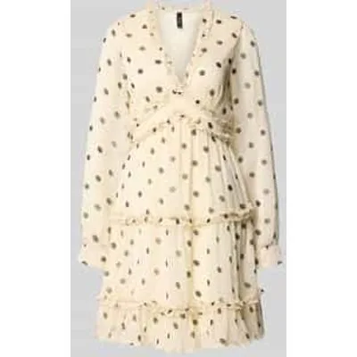 Dames zomerjurk van Vero Moda;Model 'Smilla';look: all-over motief;Pasvorm: regular fit;Lengte: mini;hals: V-hals;applicatie: frill;sluiting: zonder sluiting;Mouwvorm: ballonmouwen, lange mouw;materiaalverwerking: chiffon