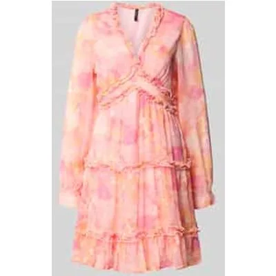 Dames zomerjurk van Vero Moda;Model 'Smilla';look: all-over motief;Pasvorm: regular fit;Lengte: mini;hals: V-hals;applicatie: frill;sluiting: zonder sluiting;Mouwvorm: ballonmouwen, lange mouw;materiaalverwerking: chiffon