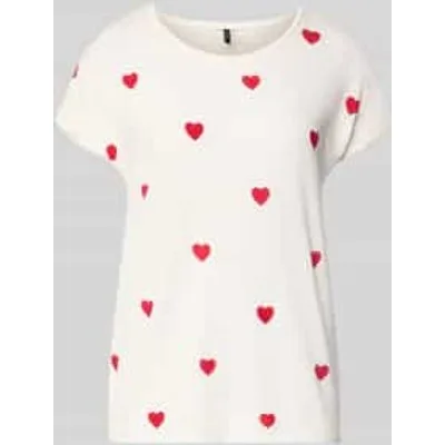Dames T-shirt van Vero Moda;Model 'Ava';Look: All-over motief;Pasvorm: Relaxed Fit;Applicatie: All-over print;Hals: Ronde hals;Mouwvorm: korte mouw;mouwboord: gefixeerde omslag;Materiaal: Lyocell-mix