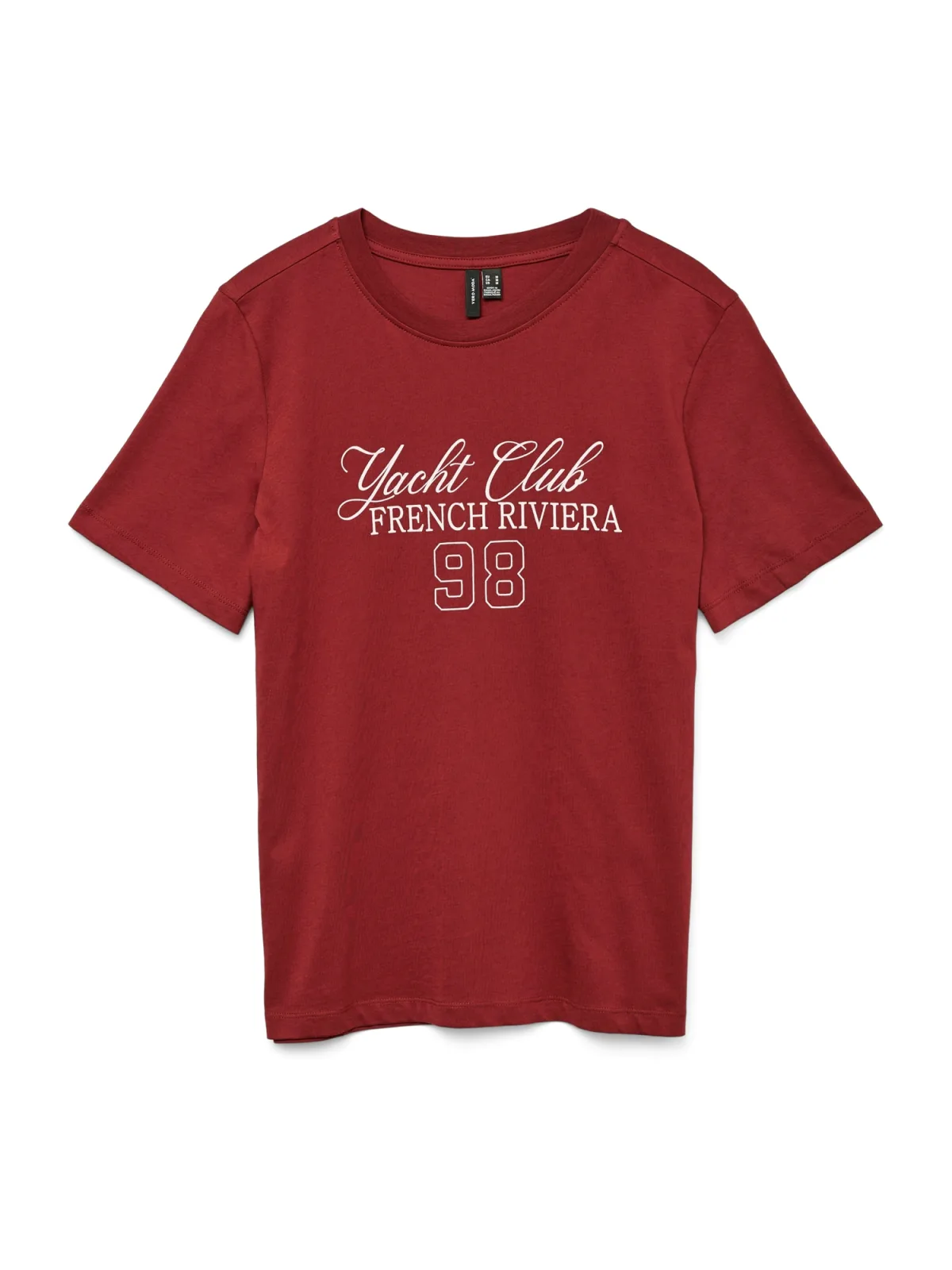 VERO MODA Shirt ‘VMABY PAULINA’ wijnrood / wit
