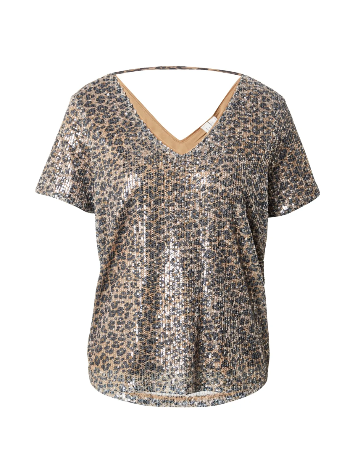 Design: Gevoerde zoom/rand, Rechte zoom; Materiaal: Jersey; Halstype: V-hals; Motief: Dierenprint; Details: Pailletten; Extra's: Glitterend, Lichte stof; Pasvorm: Normale pasvorm; Armlengte: Kwartmouw; Lengte: Normale lengte