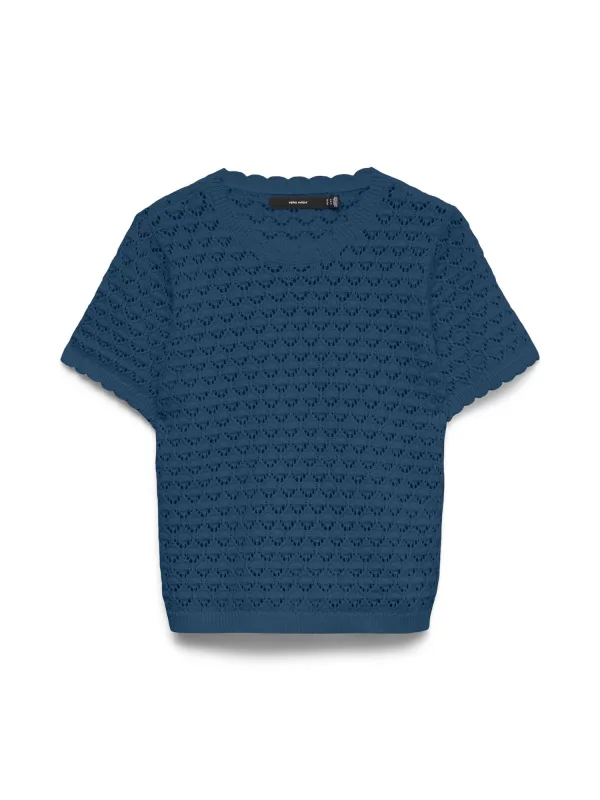 Design: Geribbeld gebreid; Materiaal: Knitwear; Halstype: Ronde hals; Details: Kant, Mesh; Extra's: Op staal naden; Pasvorm: Normale pasvorm; Armlengte: Kwartmouw; Lengte: Normale lengte