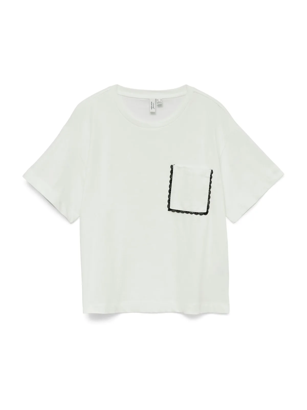 Design: Geribbelde kraag, Overcut schouder, Borstzak, Contrasterende inserts; Materiaal: Jersey; Halstype: Ronde hals; Motief: Effen; Details: Kant; Extra's: Op staal naden, Voelt zacht aan; Pasvorm: Losse pasvorm; Armlengte: Kwartmouw; Lengte: Normale lengte