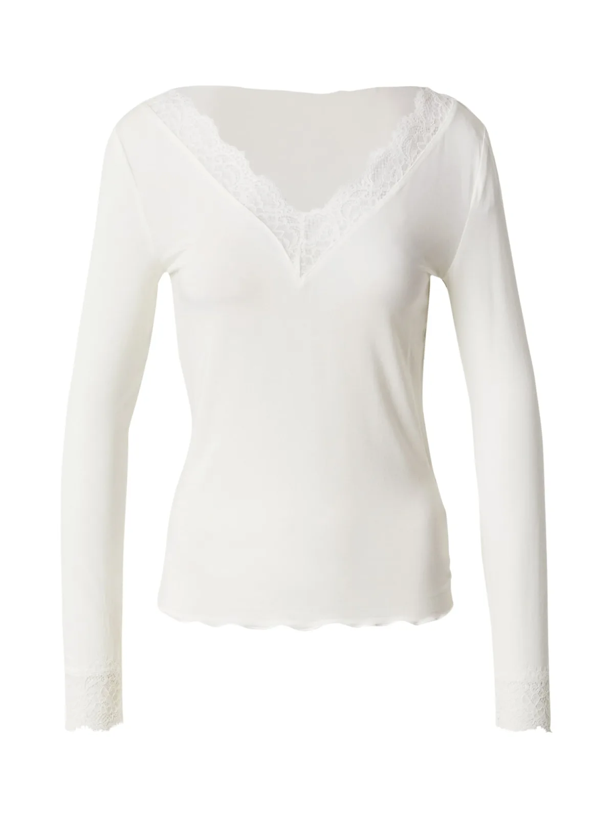 Design: Gevoerde zoom/rand, Gerolde boord; Materiaal: Jersey; Halstype: V-hals; Motief: Effen; Details: Kant; Extra's: Op staal naden, Voelt zacht aan; Pasvorm: Slanke pasvorm; Armlengte: Lange mouw; Lengte: Normale lengte