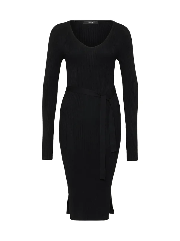 Design: Zijdelingse strepen, Tailleriem; Materiaal: Knitwear; Halstype: V-hals; Motief: Effen; Extra's: Op staal naden, Voelt zacht aan; Lengte: Knielengte; Pasvorm: Aansluitende pasvorm; Armlengte: Lange mouw