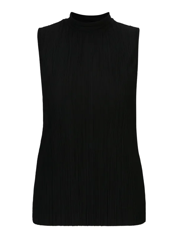 Design: Rechte zoom, Geribbeld gebreid, Staande kraag; Materiaal: Gerecycled materiaal; Halstype: Col; Motief: Effen; Extra's: Met textuur, Voelt zacht aan; Pasvorm: Normale pasvorm; Armlengte: Mouwloos; Lengte: Normale lengte