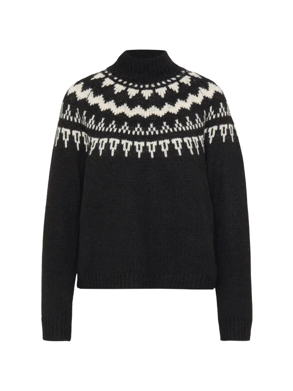 Design: Geribbelde kraag, Raglanmouwen, Geribd ceintuurtje; Materiaal: Knitwear; Halstype: Opstaande kraag; Motief: Winterse print; Extra's: Fully fashioned, Met textuur; Pasvorm: Normale pasvorm; Armlengte: Lange mouw; Lengte: Normale lengte