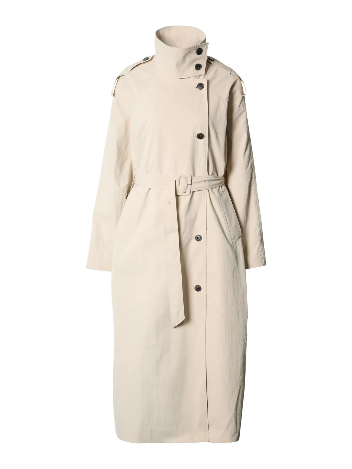 Type mantel: Trenchcoat; Design: Knop placket, Tailleriem; Type sluiting: Knoopsluiting; Voering: Licht gevoerd; Motief: Effen; Extra's: Pailletten, Op staal naden; Pasvorm: Normale pasvorm; Lengte: Normale lengte