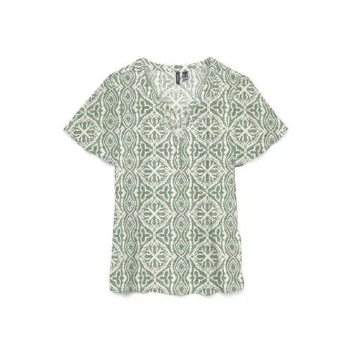 Fris, vrouwelijk en makkelijk te combineren, deze VERO MODA VMMENNY top is een praktische basis voor elke dag. De top heeft een regular fit, korte mouwen en een V-hals die subtiel het decolleté accentueert. Door de all over print krijgt je outfit meteen een levendige uitstraling, terwijl de sierveter bij de hals zorgt voor een speels detail.Details die je elke dag kunt dragen Regular fit, waardoor de top soepel langs je lichaam valt zonder strak te zitten Korte mouwen, ideaal voor warme dagen of onder een vest of blazer V-hals met sierveter voor een vrouwelijke, verfijnde look All over print die je outfit direct meer karakter geeft Gemaakt van 100% viscose, wat licht en soepel aanvoelt op de huid Geen sluiting en geen zakken, dus snel aan te trekken en een rustige uitstraling Maatadvies: dit artikel valt normaal, kies je gebruikelijke maatVeelzijdig voor werk, vrije tijd en vakantieDeze top is geschikt voor allerlei momenten. Combineer hem met een jeans voor een ontspannen dag, of draag hem met een mooie broek of rok voor een meer geklede look. De luchtige stof maakt de top ook prettig om te dragen op reis of tijdens warme dagen.VERO MODA, vertrouwd en eigentijdsVERO MODA staat bekend om modieuze items die goed aansluiten op het dagelijks leven. De collecties zijn geïnspireerd op trends, maar blijven toegankelijk en draagbaar. Zo voeg je met deze VMMENNY top eenvoudig een stijlvol en betrouwbaar kledingstuk toe aan je garderobe.Een lichte, soepelvallende top die je het hele seizoen kunt dragen.