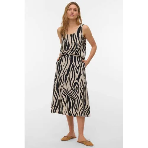 Deze mouwloze top voor dames van VERO MODA is een luchtige basic voor elke dag. De top heeft een ronde hals en een effen ontwerp, waardoor hij makkelijk te combineren is met je favoriete jeans, rok of nette broek. Door de mix van viscose en linnen voelt het materiaal soepel aan en heeft het een natuurlijke, lichte structuur.Kenmerken van de VMMYMILO top Artikeltype: dames top zonder mouwen, uit de Daily collectie Ronde hals voor een rustige, tijdloze uitstraling Effen design, eenvoudig te combineren met verschillende outfits Soepel geweven materiaal van 55% viscose en 45% linnen Geschikt voor het voorjaar en de herfst Dit artikel valt normaal volgens het maatadvies Onderhoud: handwas, niet strijken en niet in de droogtrommelComfortabel in alledaagse combinatiesDe VMMYMILO top past goed bij je dagelijkse garderobe. Draag de top op een straight jeans met sneakers voor een relaxte dag of combineer met een pantalon en sandaal voor een nettere look. Door de mouwloze snit is deze top prettig op mildere dagen en ook fijn onder een vest of blazer.VERO MODA: toegankelijke modeVERO MODA staat bekend om moderne dameskleding met toegankelijke ontwerpen voor elke dag. De collecties sluiten aan op actuele trends en bieden tegelijkertijd draagbare items die makkelijk in je bestaande garderobe passen. Met deze top voeg je een basic toe aan je garderobe van een bekend merk.Een eenvoudige top die je vaak uit de kast pakt.
