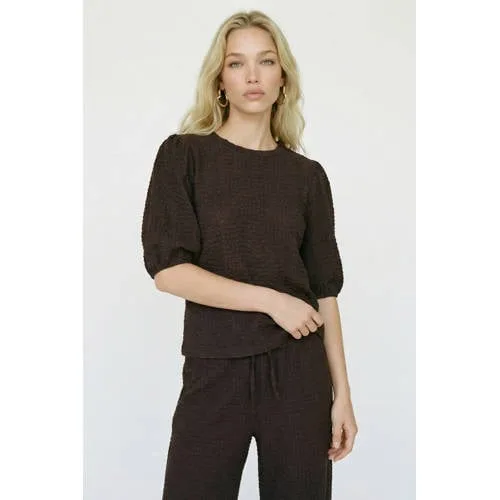 Geef je dagelijkse look een verzorgde uitstraling met deze VERO MODA blouse met ronde hals in donkerbruin. De top heeft korte ballonmouwen en een gesloten halslijn, waardoor het een nette en tegelijk moderne uitstraling krijgt. De subtiele textuur in de stof geeft extra diepte aan de effen kleur en maakt deze blouse geschikt voor zowel werk als een etentje na afloop. De soepele, licht elastische kwaliteit zorgt dat de top prettig meebeweegt.Details die je elke dag kunt dragen Effen donkerbruine kleur, makkelijk te combineren met denim, zwarte broeken of een rok Korte ballonmouwen voor een vrouwelijke, luchtige uitstraling Gesloten ronde hals die netjes aansluit bij de halslijn Stof met verfijnde textuur voor een rustig maar interessant oppervlak Valt normaal volgens het maatadvies, waardoor je gewoon je gebruikelijke maat kunt kiezen Licht elastisch materiaal voor extra bewegingsvrijheid Praktisch in onderhoud, wasbaar op 30 graden en lauw strijkbaarIdeaal voor je daily garderobeDeze top uit de 'Daily' collectie is een praktische basis voor het voorjaar en de rest van het jaar. Combineer met een jeans en sneakers voor een casual dag, of met een nette broek en laarsjes voor een meer geklede look.VERO MODA, vertrouwd in damesmodeVERO MODA staat bekend om eigentijdse kleding die goed aansluit bij het dagelijks leven. De collecties volgen de trends, maar blijven draagbaar en toegankelijk. Zo vul je je kast met items die je gemakkelijk combineert in verschillende situaties.Een praktische basis top waar je de hele week variatie mee creëert.