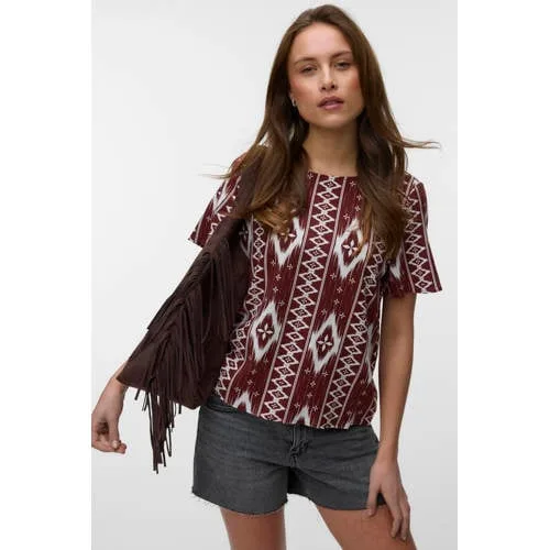 Breng beweging in je dagelijkse look met deze VERO MODA dames top met zebraprint. De geweven stof met speelse dierenprint geeft direct een opvallend accent, terwijl de rechte korte mouwen en ronde hals voor een rustige balans zorgen. Ideaal voor naar je werk, een etentje of gewoon een dag waarop je net iets meer uitstraling wilt zonder veel moeite te doen.Details die je elke dag kunt dragen Geweven top met zebraprint voor een moderne, opvallende look Gemaakt van viscose en linnen, voelt soepel en luchtig aan Ronde hals en rechte korte mouwen voor een ontspannen pasvorm Knoopsluiting op de rug voor een vrouwelijke afwerking Valt normaal volgens het maatadvies, waardoor je eenvoudig je gebruikelijke maat kiest Handwas, niet strijken en niet in de droogtrommel, zo blijft de print mooiGemakkelijk te stylen in je dagelijkse garderobeDeze top komt uit de 'Daily' collectie en laat zich makkelijk combineren met je favoriete jeans, een zwarte broek of een rok. De lichte, luchtige stof maakt het een prettig item voor het tussenseizoen, zoals de herfst. Met sneakers of laarsjes creëer je in een paar stappen een complete outfit.VERO MODA: modieuze basics met een actuele twistVERO MODA staat bekend om modieuze kleding die goed past in een druk dagelijks leven. De collecties volgen de trends, maar blijven toegankelijk en draagbaar. Met deze top haal je een betrouwbaar item in huis dat je eenvoudig in verschillende outfits verwerkt.Een stijlvolle keuze waarmee je zonder moeite iets extra’s toevoegt aan je alledaagse looks.