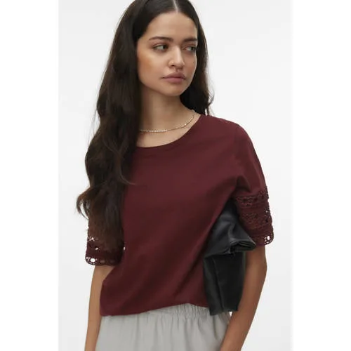 VERO MODA top roodbruin broderie