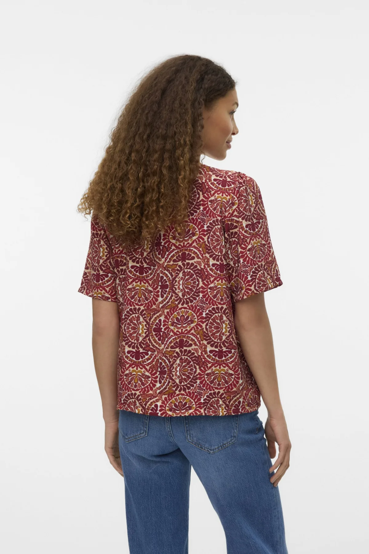 Deze VERO MODA VMFLORENCE top heeft een rechtvallend model met korte mouwen en een V-hals. De top is geweven en gemaakt van viscose en nylon, de rechte mouwen zorgen voor een ontspannen uitstraling.