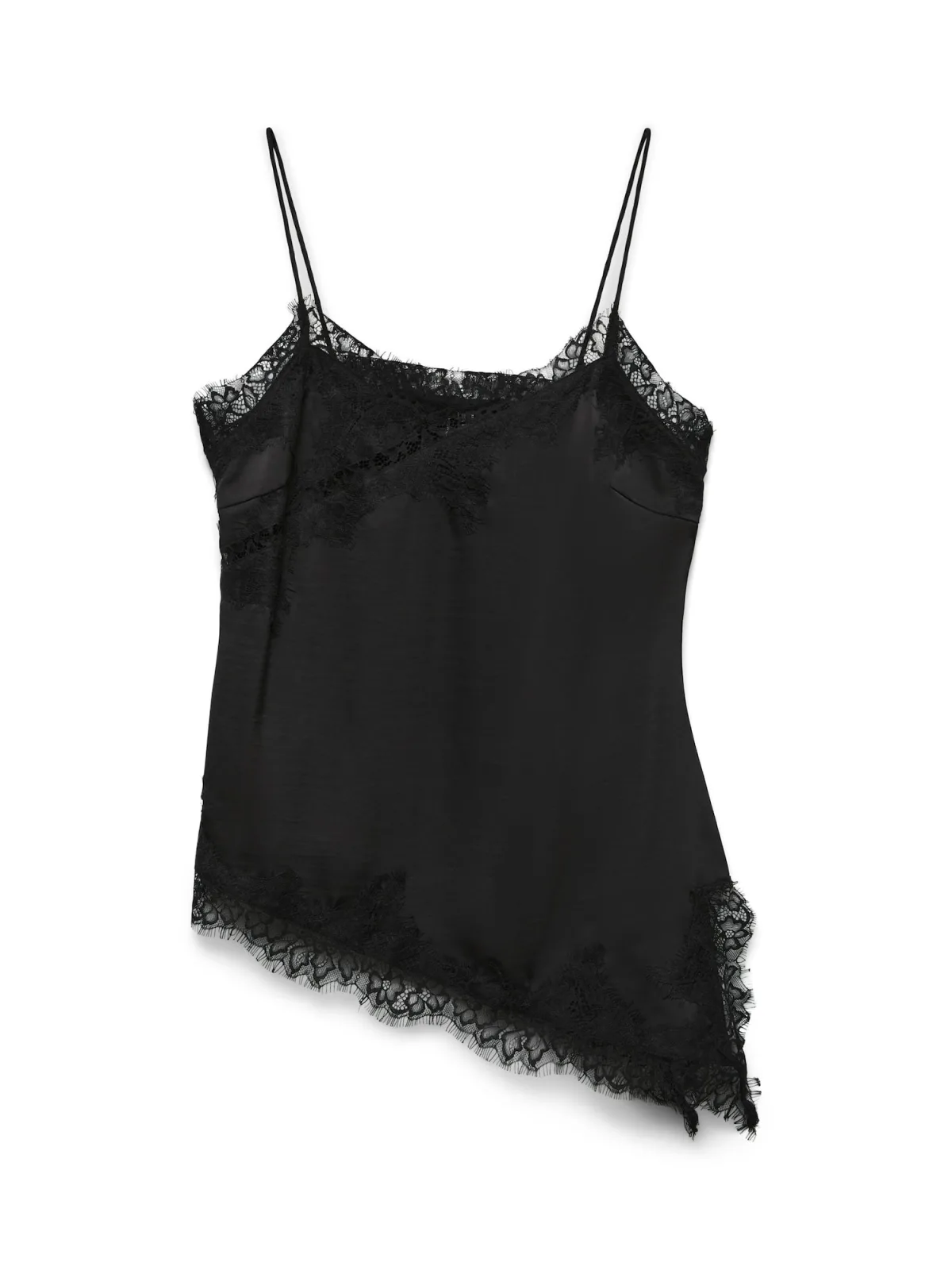 Design: Asymmetrische zoom; Motief: Effen; Soort bandjes: Spaghettibandjes; Details: Kant; Extra's: Voelt zacht aan; Pasvorm: Aansluitende pasvorm; Armlengte: Mouwloos; Lengte: Normale lengte
