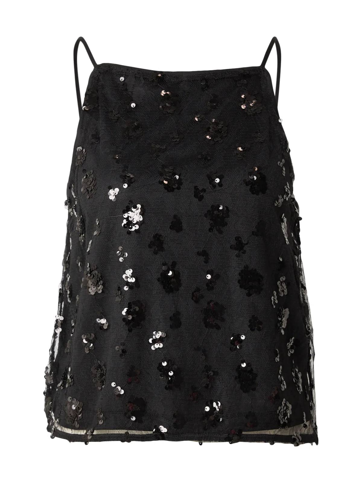 Design: Gevoerde zoom/rand, Rechte zoom, Recht model; Halstype: Carréhals; Soort bandjes: Spaghettibandjes; Details: Pailletten, Kant; Extra's: Glitterend, Applicaties; Pasvorm: Normale pasvorm; Armlengte: Mouwloos; Lengte: Normale lengte