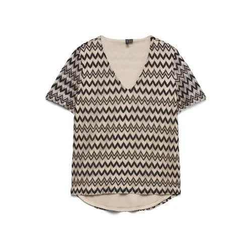Deze VERO MODA dames top met V-hals is een basic met subtiele details voor elke dag. De zwart/zand all over print geeft direct een moderne uitstraling, terwijl de rechte pasvorm luchtig langs je lichaam valt. De V-hals en korte mouwen zorgen voor een open en frisse look die goed past bij het voorjaar en milde zomerdagen. De stof voelt soepel aan en door de 60% katoen voelt de top zacht aan op de huid.Details die je elke dag wilt dragen Kleur: zwart/zand met all over print met een rustig maar speels dessin Rechte pasvorm die niet aftekent en makkelijk te combineren is V-hals die de halslijn subtiel accentueert zonder te diep te zijn Korte, rechte mouwen voor extra bewegingsvrijheid Gemaakt van zachte stof met 60% katoen voor een zacht draaggevoel Valt normaal volgens maatadvies, waardoor je gewoon je eigen maat kunt kiezen Praktisch in onderhoud: wasbaar op 30 graden en lauw strijkbaar (1 punt) Niet geschikt voor de droogtrommel, zo blijft de stof langer mooiGemakkelijk stylen van werk tot weekendDe top past net zo goed op een donkerblauwe of zwarte jeans als op een nette broek of rok. Met sneakers oogt de look ontspannen, met sandalen of loafers krijgt je outfit een meer geklede uitstraling.VERO MODA: modieuze basics voor elke dagVERO MODA staat bekend om toegankelijke mode die aansluit op de trends van het seizoen. De collectie biedt draagbare items die je eenvoudig combineert met wat je al in de kast hebt. Zo stel je zonder moeite outfits samen die passen bij jouw dag.Deze top maakt het gemakkelijk om je outfit telkens weer af te stemmen op wat jouw dag vraagt.
