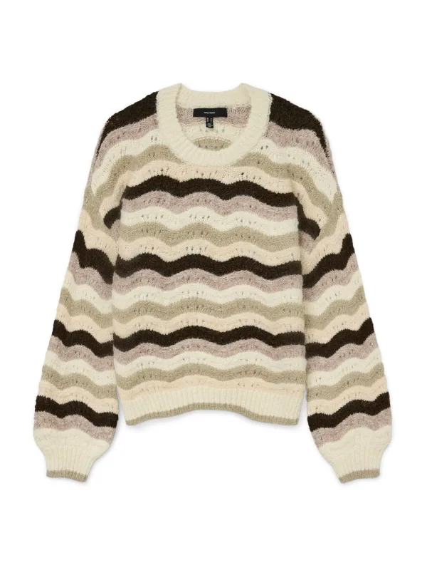 VERO MODA Trui ‘DOJA’ beige / taupe / donkerbruin