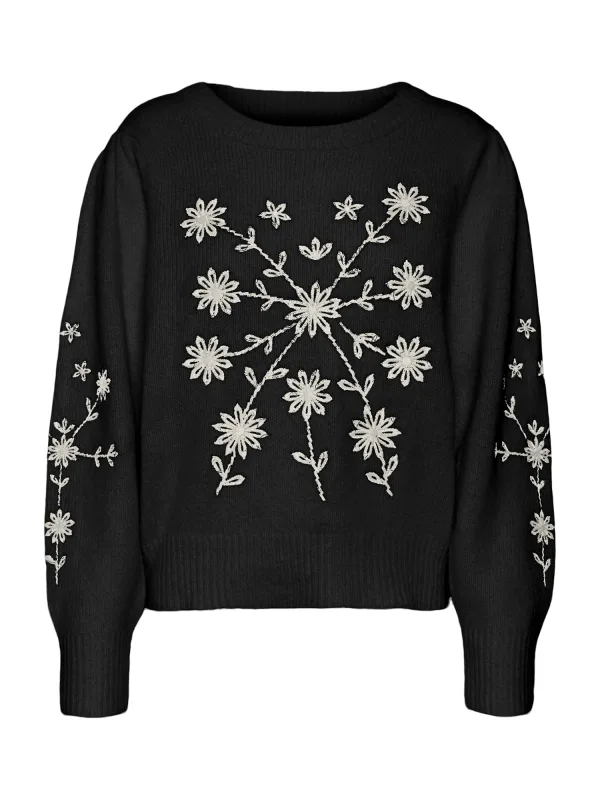 Vero Moda Trui Vmgaia Ls O-neck Embroidery Pullove 10314221 Black/w....