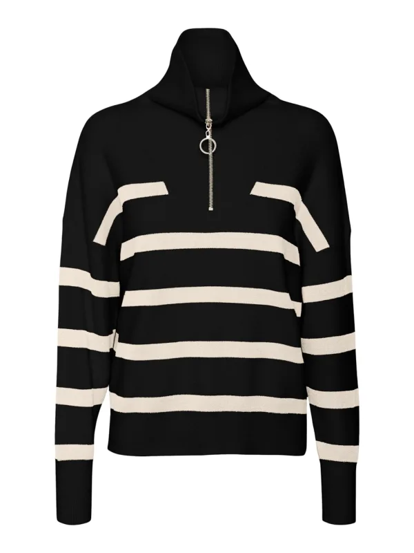 VERO MODA Trui ‘Saba’ zwart / offwhite Prijzen