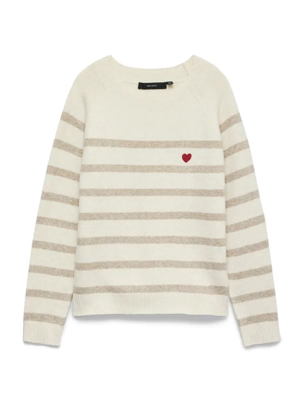 Specificaties: VERO MODA Trui ‘VMDOFFY’ ecru / beige gemêleerd / donkerrood