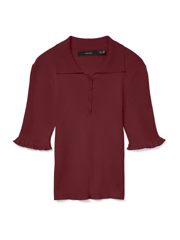 Design: Rechte zoom, Knop placket; Type sluiting: Knoopsluiting; Materiaal: Knitwear; Halstype: Polokraag; Motief: Effen; Details: Ruches; Extra's: Met textuur, Voelt zacht aan; Pasvorm: Slanke pasvorm; Armlengte: Halve mouw; Lengte: Normale lengte