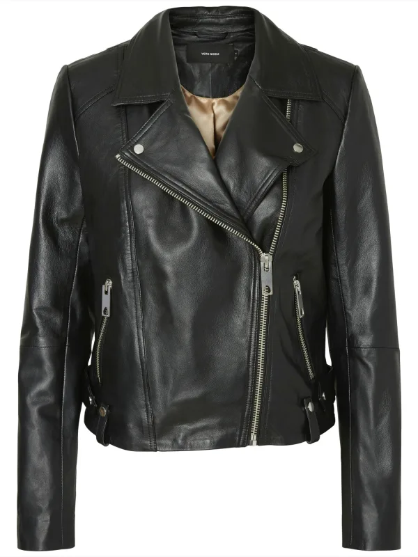Design: Rechte zoom, Revers kraag, Ritszakken aan de zijkant; Type sluiting: Ritssluiting; Type jas: Bikerjack; Voering: Licht gevoerd; Materiaal: Leer; Motief: Effen; Extra's: Vaste grip, Gladde stof; Pasvorm: Normale pasvorm