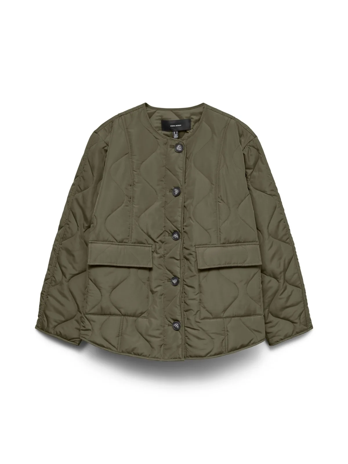 Gewatteerd damesjack van Vero Moda;Model 'Millie';Look: effen;Pasvorm: Regular fit ;Kraagmodel: zonder kraag;Sluiting: enkele knoopsluiting;Mouwvorm: lange mouwen;Zakken: Klepzakken ;Materiaalverwerking: watté