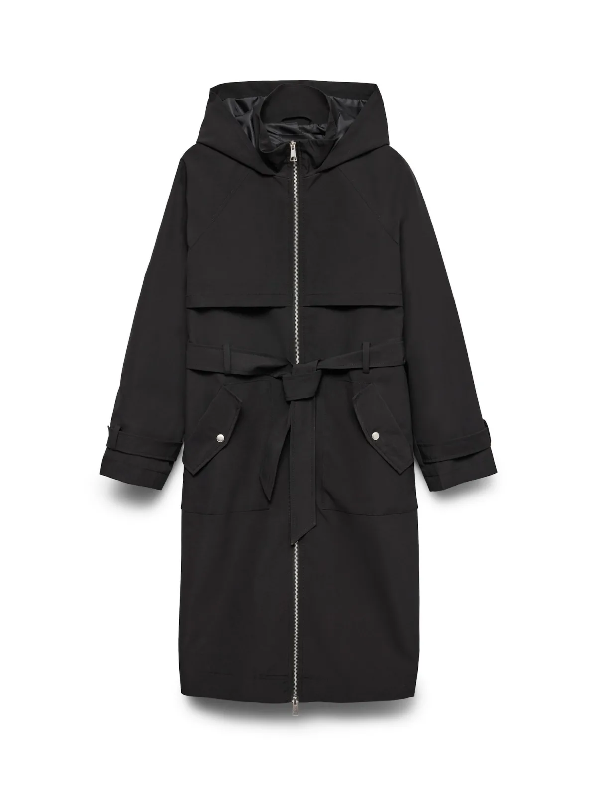 Type mantel: Trenchcoat; Design: Raglanmouwen, Opzet-/flapzak, Tailleriem; Type sluiting: Ritssluiting; Voering: Niet gevoerd; Halstype: Capuchon; Motief: Effen; Extra's: Riemlussen; Pasvorm: Normale pasvorm; Lengte: Normale lengte