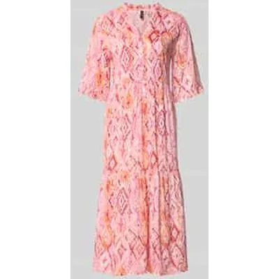 dames maxi-jurk van Vero Moda;Model 'Easy Joy';look: all-over motief;pasvorm/model:: uitlopend;lengte: maxi;hals: Henley;Details: rimpeling;sluiting: korte knoopsluiting;mouwvorm: 1/2-mouwen;Zoom: recht;Materiaal: zuiver viscose