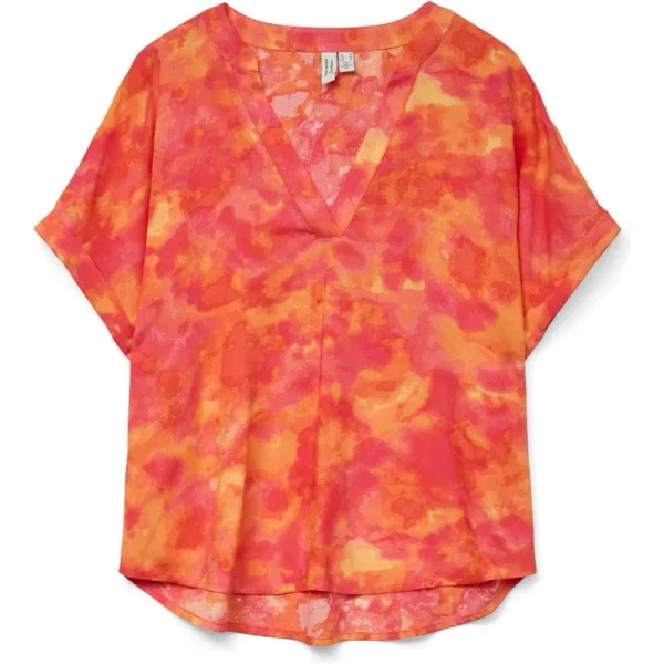 Deze prachtige oranje top van Vero Moda is een absolute must-have voor elke moderne vrouw. Het levendige dessin maakt deze top perfect voor elk seizoen en elke gelegenheid. Of je nu naar kantoor gaat of een avondje uit, deze top is de perfecte keuze. en#10;en#10;Gemaakt van 100% Lenzing Ecoverot viscose, is deze top niet alleen stijlvol maar ook duurzaam. De stof voelt heerlijk zacht aan op de huid en valt soepel langs het lichaam. De top heeft een klassieke ronde hals en korte mouwen, waardoor het een tijdloos en veelzijdig kledingstuk is. en#10;en#10;Combineer deze top met een mooie rok en hakken voor een elegante look, of draag het met een jeans en sneakers voor een meer casual uitstraling. Hoe je het ook draagt, deze oranje top zal zeker de aandacht trekken en je outfit compleet maken. Bestel nu en voeg een vleugje kleur toe aan je garderobe met deze prachtige top van Vero Moda.