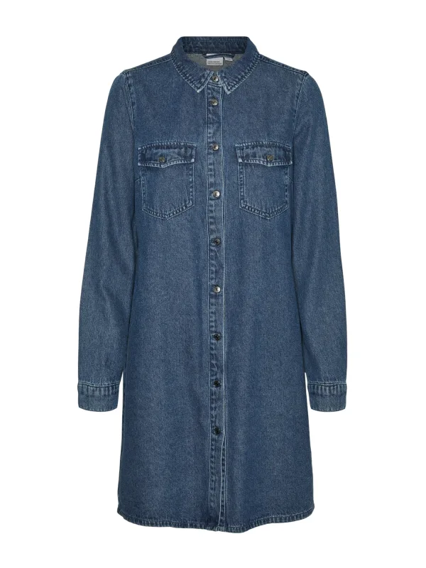 VERO MODA – VMJENNIE LS SHORT DENIM DRESS GA NOOS – Dames – Mini jurken Prijzen