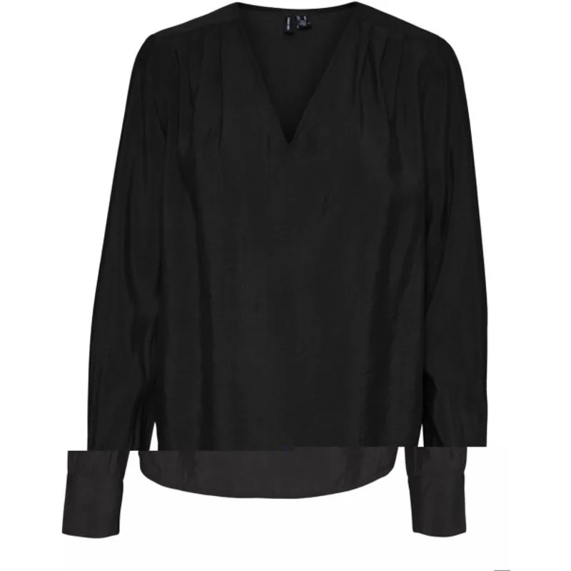 De Vero Moda Lena blouse is een must-have voor elke fashion-forward vrouw. Deze zwarte top met lange mouwen en V-hals is het perfecte item voor elke gelegenheid. De blouse is gemaakt van een zachte en comfortabele mix van 80% viscose en 20% nylon, waardoor hij de hele dag door comfortabel zit.en#10;en#10;De blouse heeft een stijlvol ontwerp met plooien langs de halslijn, wat zorgt voor een speels en vrouwelijk effect. Aan de achterkant valt de blouse langer en heeft een afgeronde zoom, wat zorgt voor een elegante look. Deze top is perfect te combineren met een skinny jeans, een rok of een nette pantalon. Ook kan hij zowel als casual als formeel gedragen worden.en#10;en#10;Met de Vero Moda Lena blouse ben je verzekerd van een tijdloos en veelzijdig item in je garderobe. Bovendien is de blouse van hoge kwaliteit, waardoor je er nog jaren van kunt genieten. Bestel hem nu in onze online shop en creëer eindeloze stijlvolle looks!