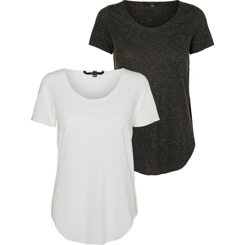Vero Moda Lua T-Shirt voor dames, set van 2, zwart-wit. - Ronde hals. - Korte mouwen. - Semi-sheer. - 88% polyester, 12% linnen. - Ref: 10172454
