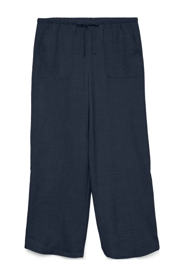 Deze broek is van VERO MODA, gemaakt van 100% polyester. De broek heeft een wide leg fit en een high waist met trekkoorden. Je draagt deze casual broek gemakkelijk en combineert hem snel met je favoriete tops.